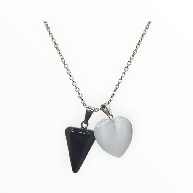 Ce collier pendule en cristal en forme de coeur avec un pendentif cone obsidienne est un bijou à la fois esthétique et fonctionnel, pensé pour accompagner le bien-être énergétique au quotidien. Facile à utiliser, il convient aussi bien aux débutants qu’aux personnes déjà familières avec le pendule.