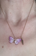 Matériaux : Chaine Acier inoxydable doré, pendentif papillon en acrylique violet, petite breloque en cône Acier inoxydable doré
