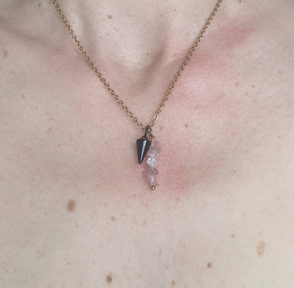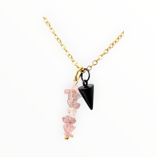 Matériaux : Chaine et pendentif en forme de cône noir en Acier inoxydable et pendentif en pierres naturelles irrégulières